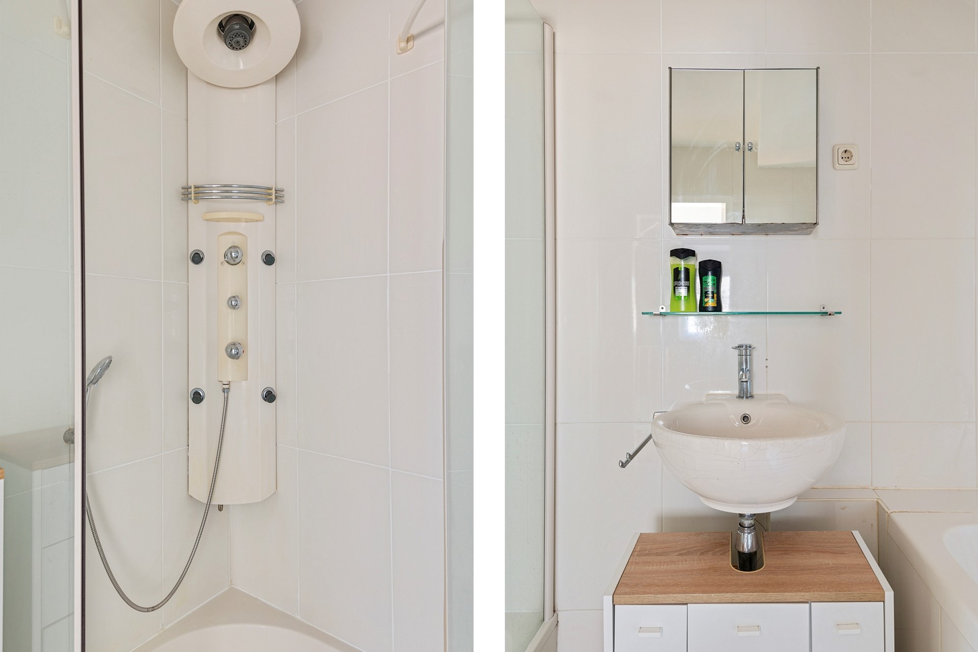 You enter the hall with wooden floor, toilet with sink. From the hall you enter the spacious dining room with open kitchen with 6-burner gas stove, through the door on your left you walk to the cozy sunny living room with fireplace and a view of the front garden. There is a beautiful wooden floor on the entire ground floor, except in the kitchen where there are tiles. In the dining room there is a double door to the private backyard, which offers many possibilities. The garage is accessible via the front garden through the garage door, and via the door in the private sunny backyard. This could also provide an opportunity for a garage conversion into an annex for bed and breakfast which opens the possibility for both beach lovers and formula one.