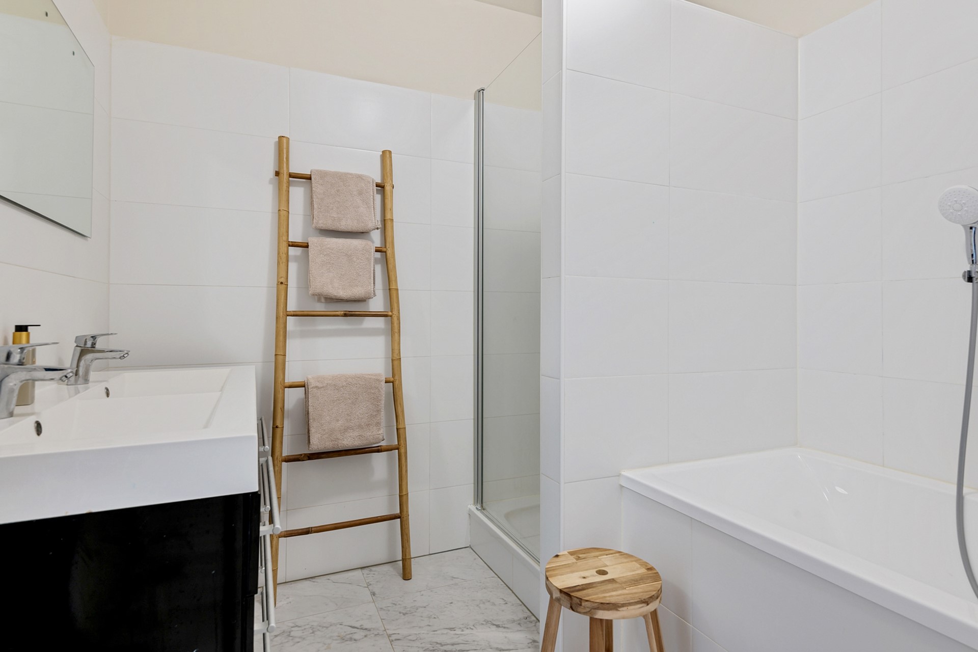 De badkamer is uitgerust met een ligbad, douchecabine en dubbele wastafel, waardoor luxe en comfort hand in hand gaan. Met een energielabel A, triple glas en CV-verwarming, is deze woning ook nog eens energiezuinig en comfortabel. Het balkon op het Westen biedt een aantrekkelijke buitenruimte om te genieten van de zon en de frisse lucht.