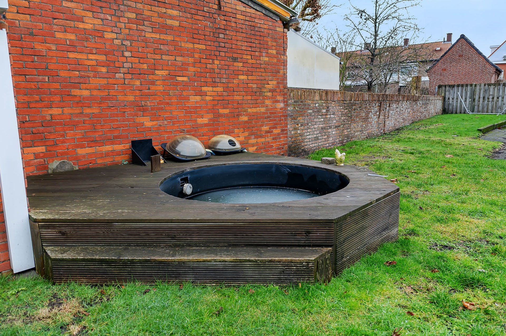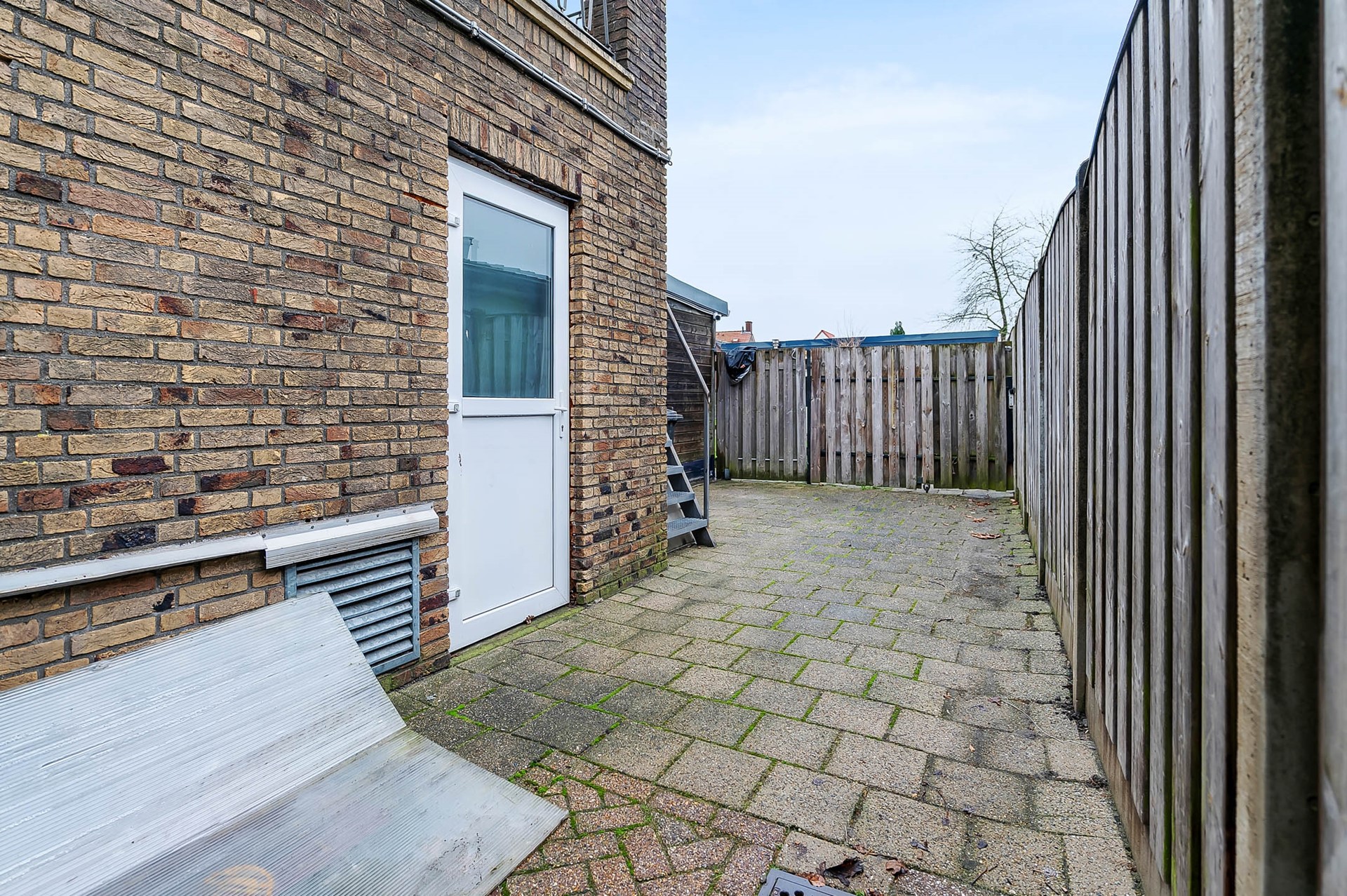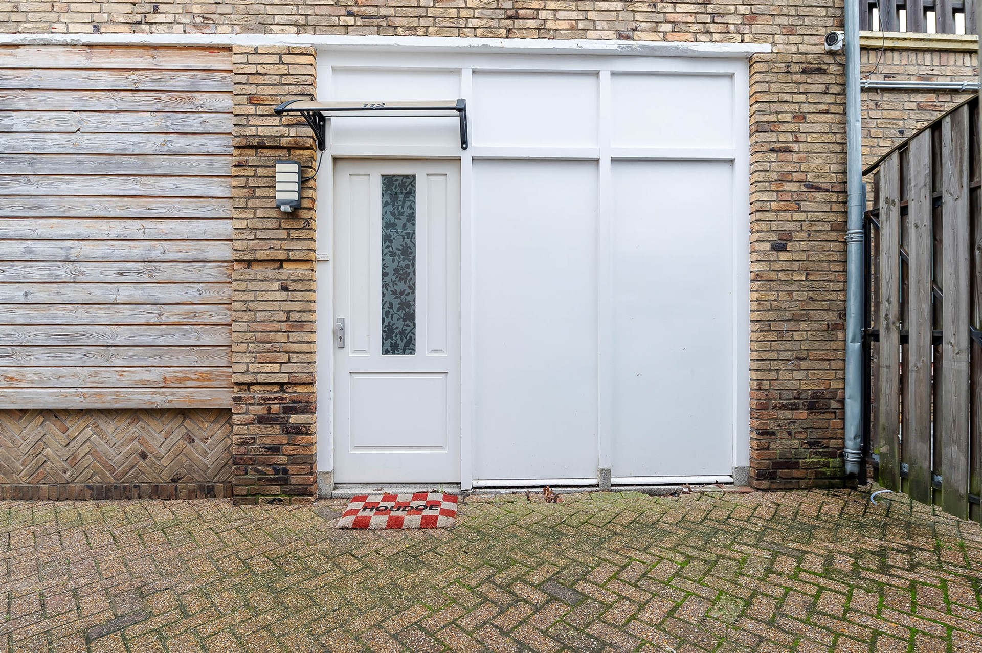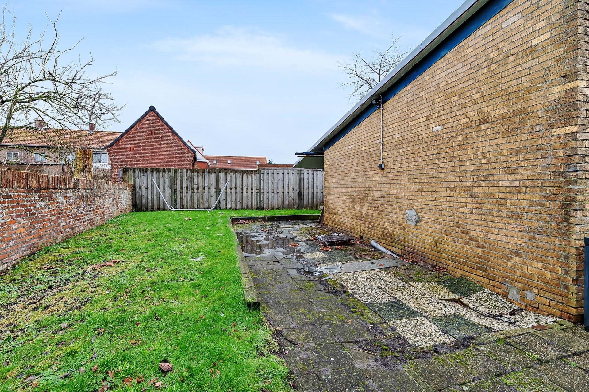 Deze achtertuin is bereikbaar via de oprit aan de zijkant van de woning.