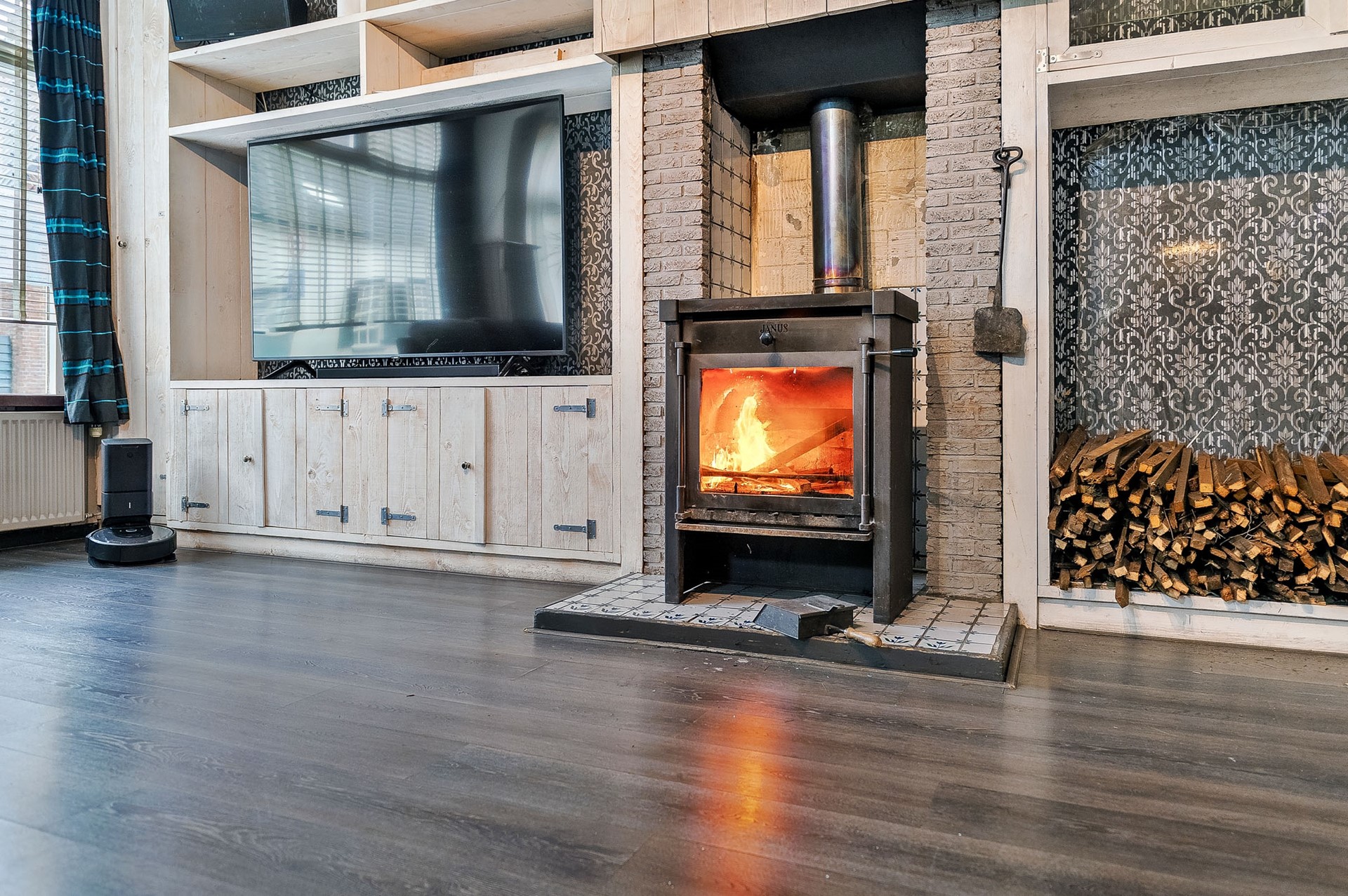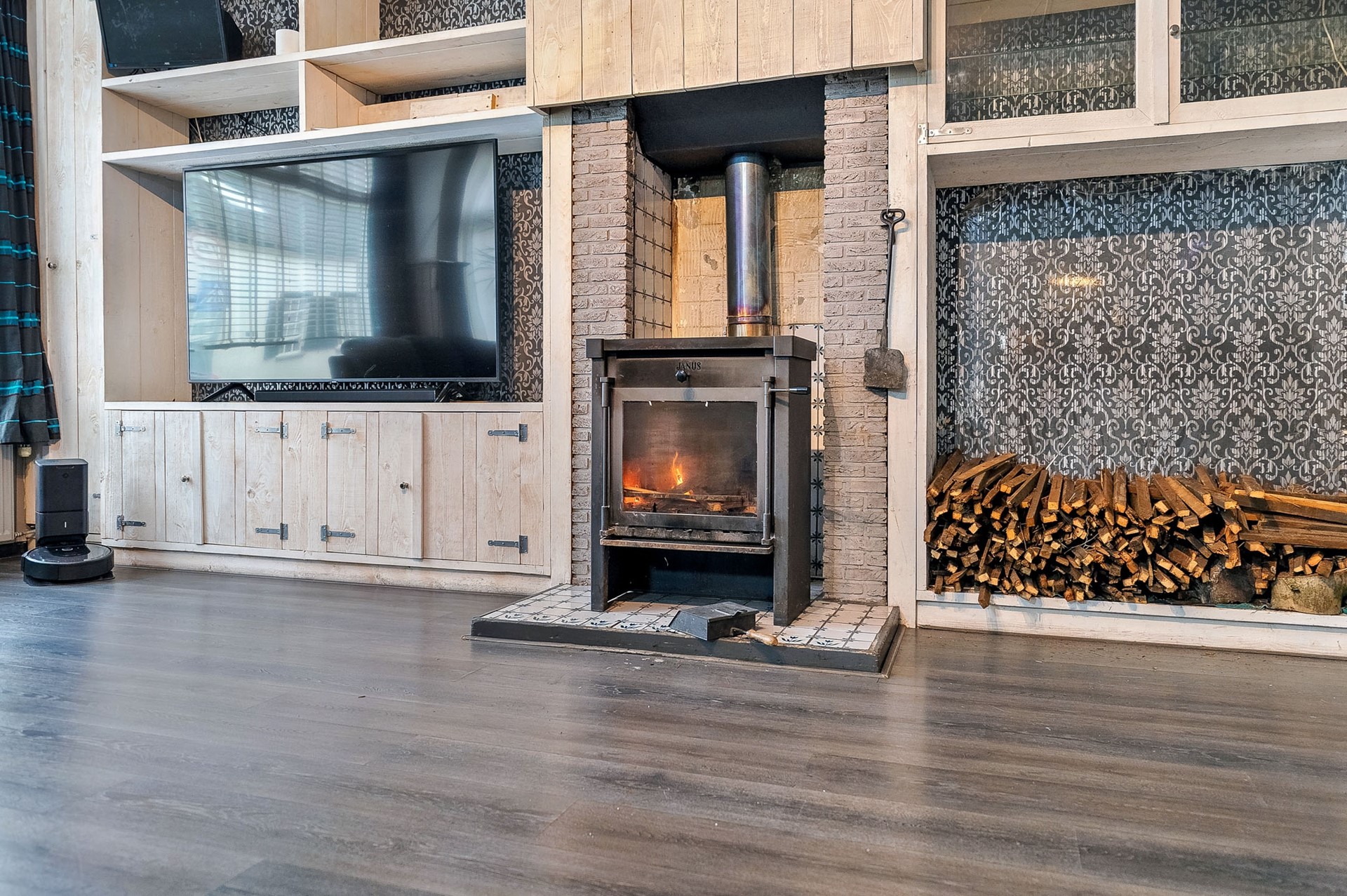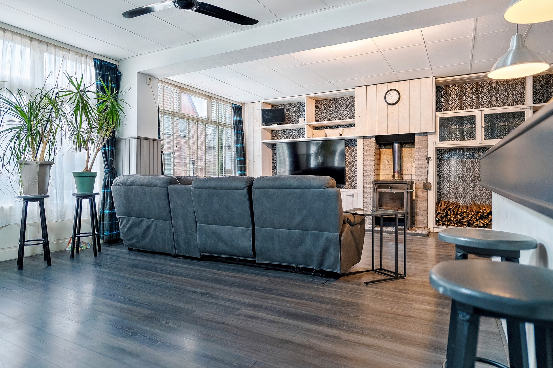 Via de zij ingang betreden we de woning en komen we in de riante woonkamer. Deze ruimte, voorheen met horecabestemming, is aan de voorzijde van het pand gelegen en voorzien van fijne houtkachel. Aangrenzend aan de woonkamer is er een badkamer met douche en toilet bereikbaar. De toiletruimte beschikt tevens over een urinoir.