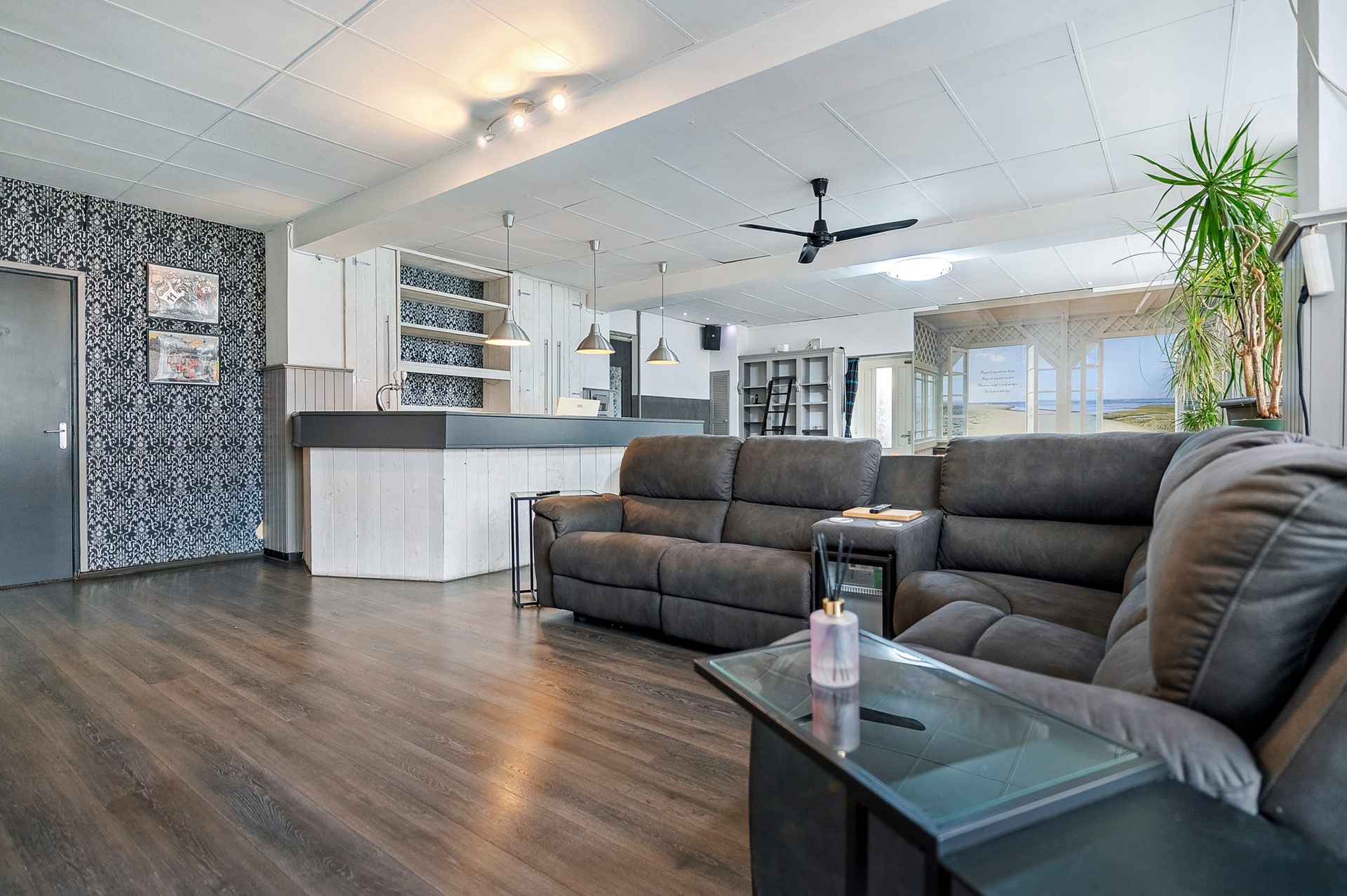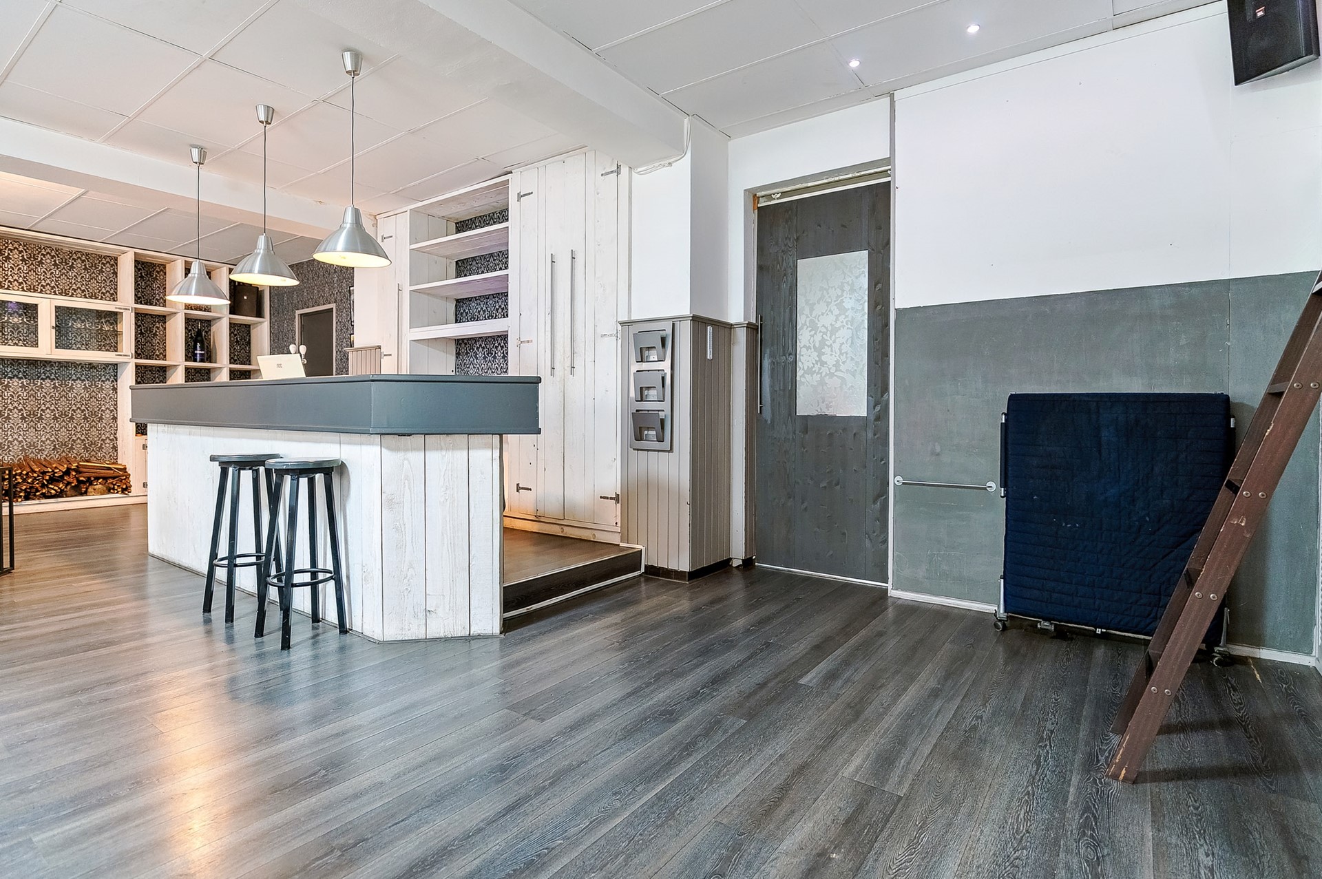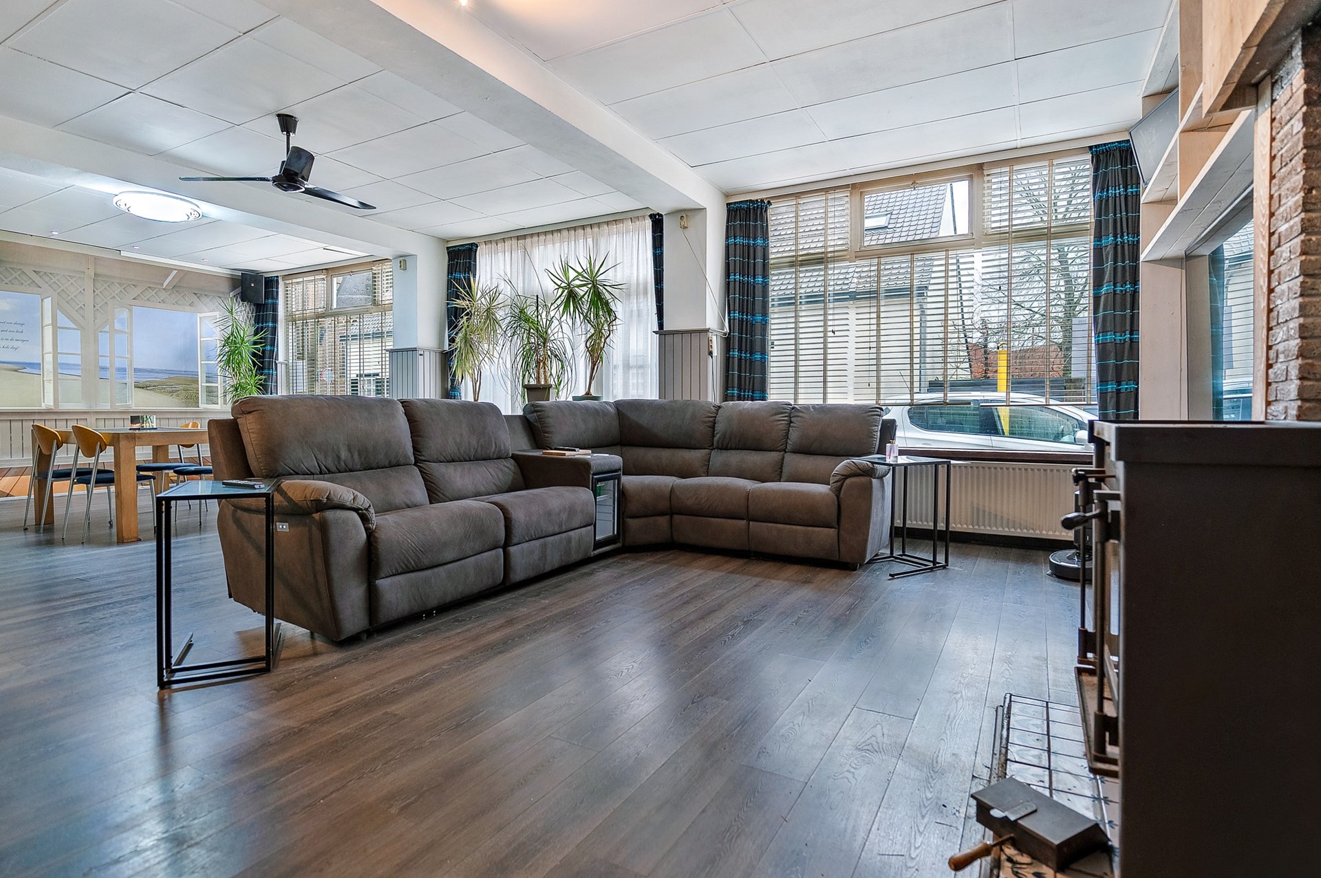 Via de zij ingang betreden we de woning en komen we in de riante woonkamer. Deze ruimte, voorheen met horecabestemming, is aan de voorzijde van het pand gelegen en voorzien van fijne houtkachel. Aangrenzend aan de woonkamer is er een badkamer met douche en toilet bereikbaar. De toiletruimte beschikt tevens over een urinoir.