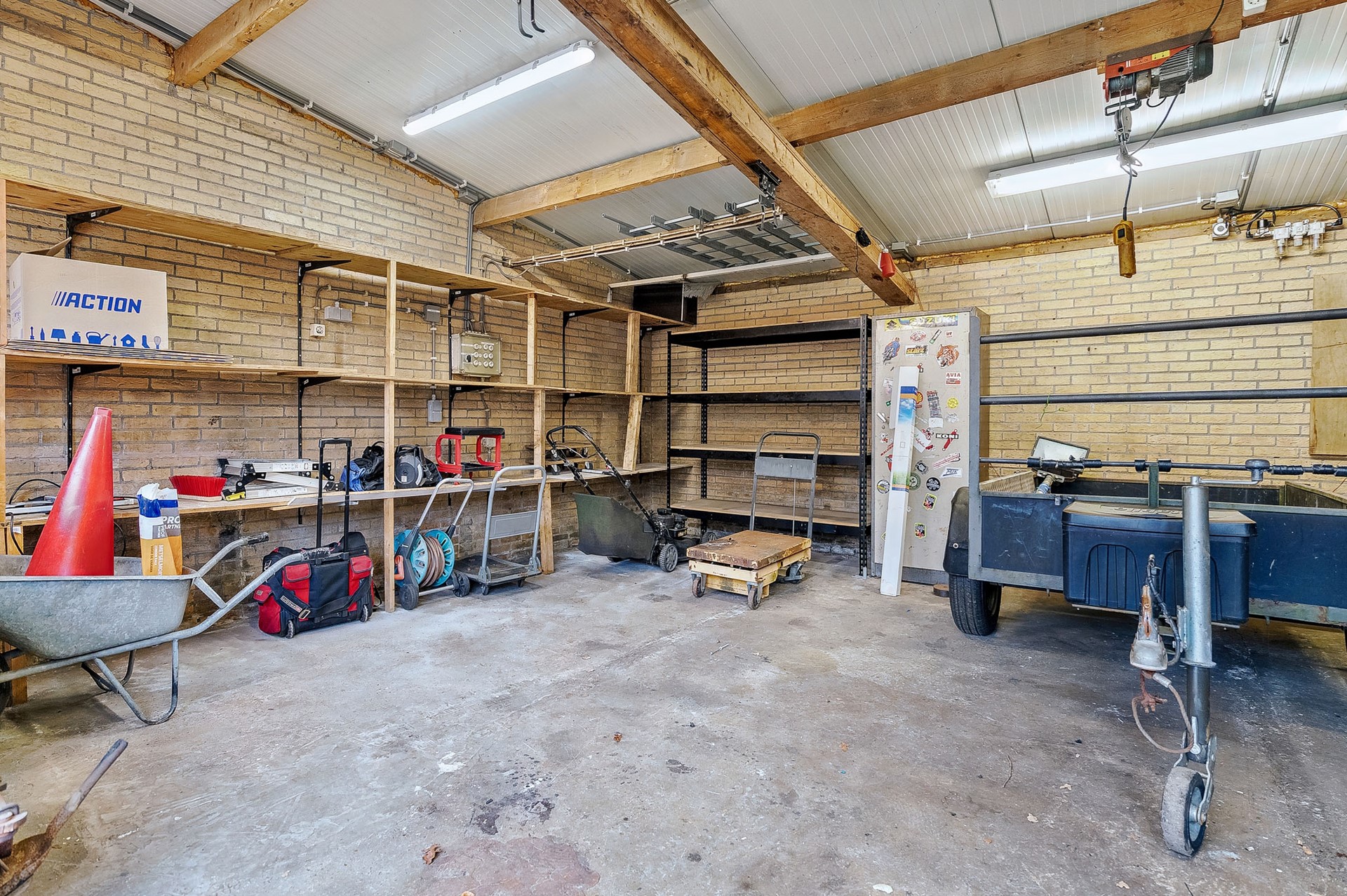 De vrijstaande garage biedt ruimte voor meerdere auto's en is voorzien van elektra en verwarming. Achter deze garage is nog extra overkapping/berging voor opslag.