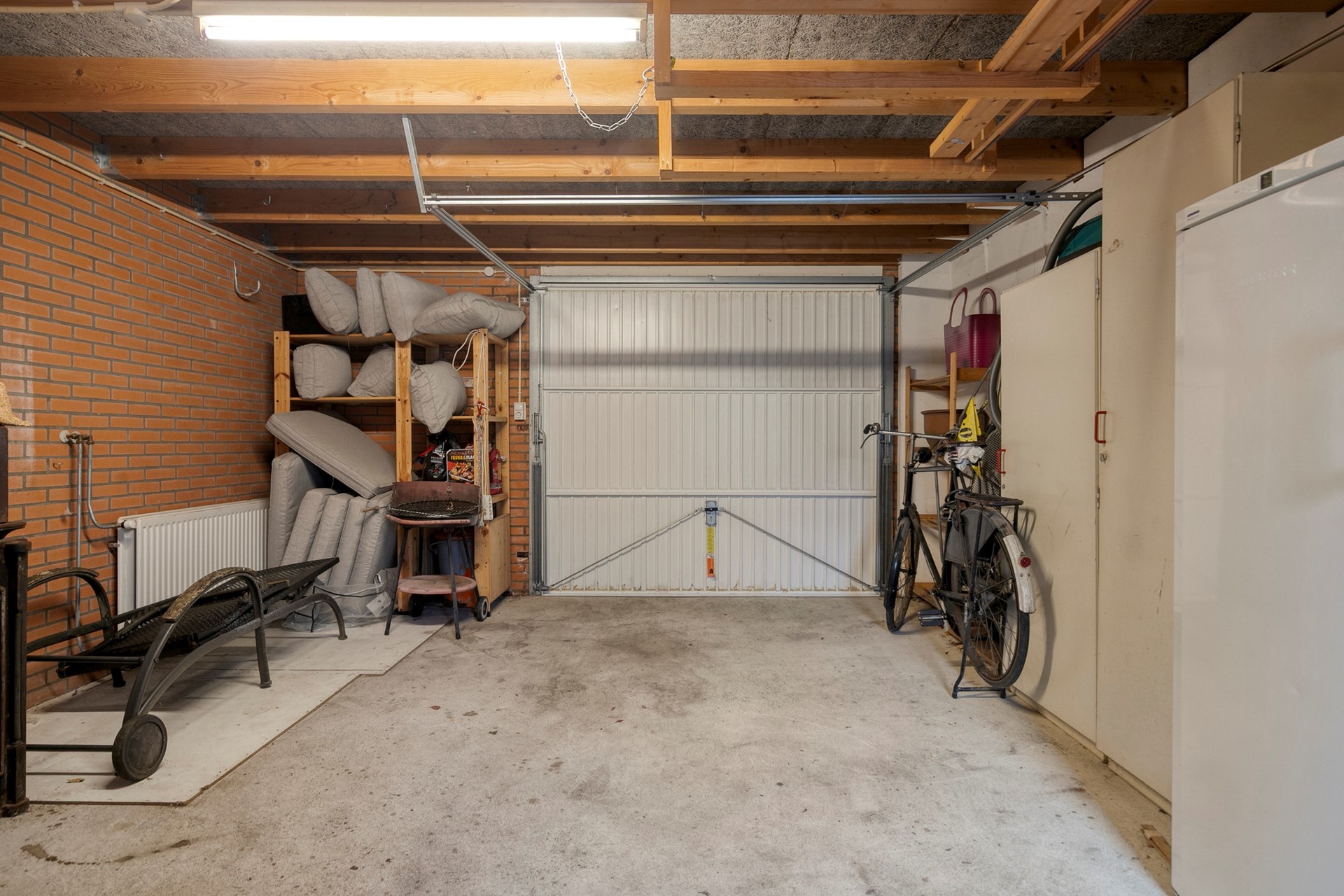 Een fijne, besloten achtertuin, achterom, een brede en diepe groene voortuin, een eigen lange oprit voor meerdere auto’s én een zeer royale garage/berging met werkbank en kanteldeur: zeldzame luxe in deze wijk!