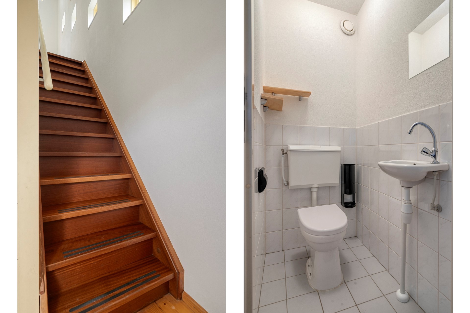 Hier vind je de hoofdslaapkamer met hoog plafond en in de vaste kasten veel bergruimte, de badkamer met douchecabine, wastafelmeubel, tweede toilet en aansluiting voor wasmachine/droger. Vanuit de hoofdslaapkamer met openslaande deuren, maar ook op de overloop heb je toegang tot het ruime dakterras – een heerlijke plek om in privacy te genieten van rust en zon.