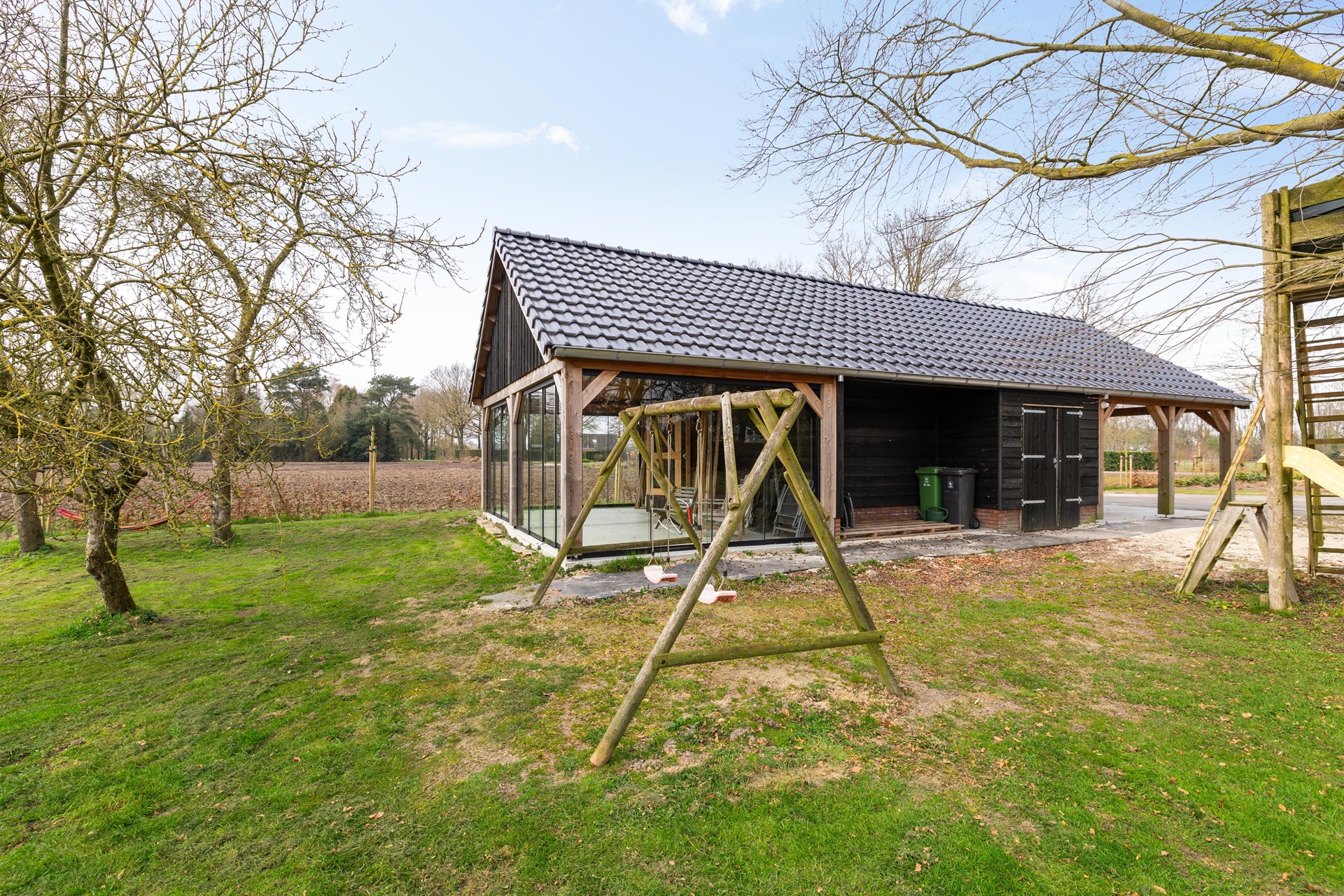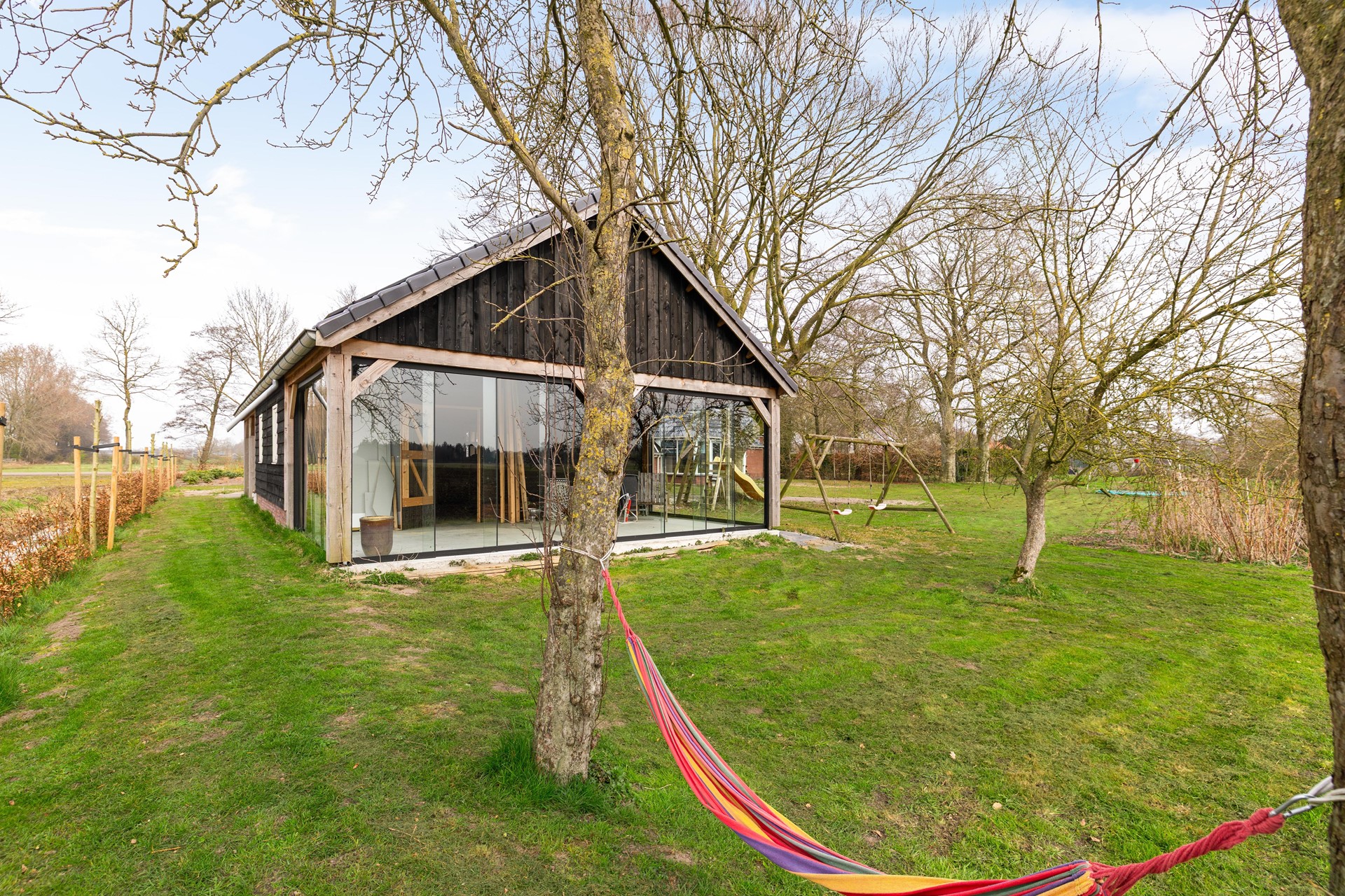Landelijk genieten: tuin rondom en een houten schuur met verrassing