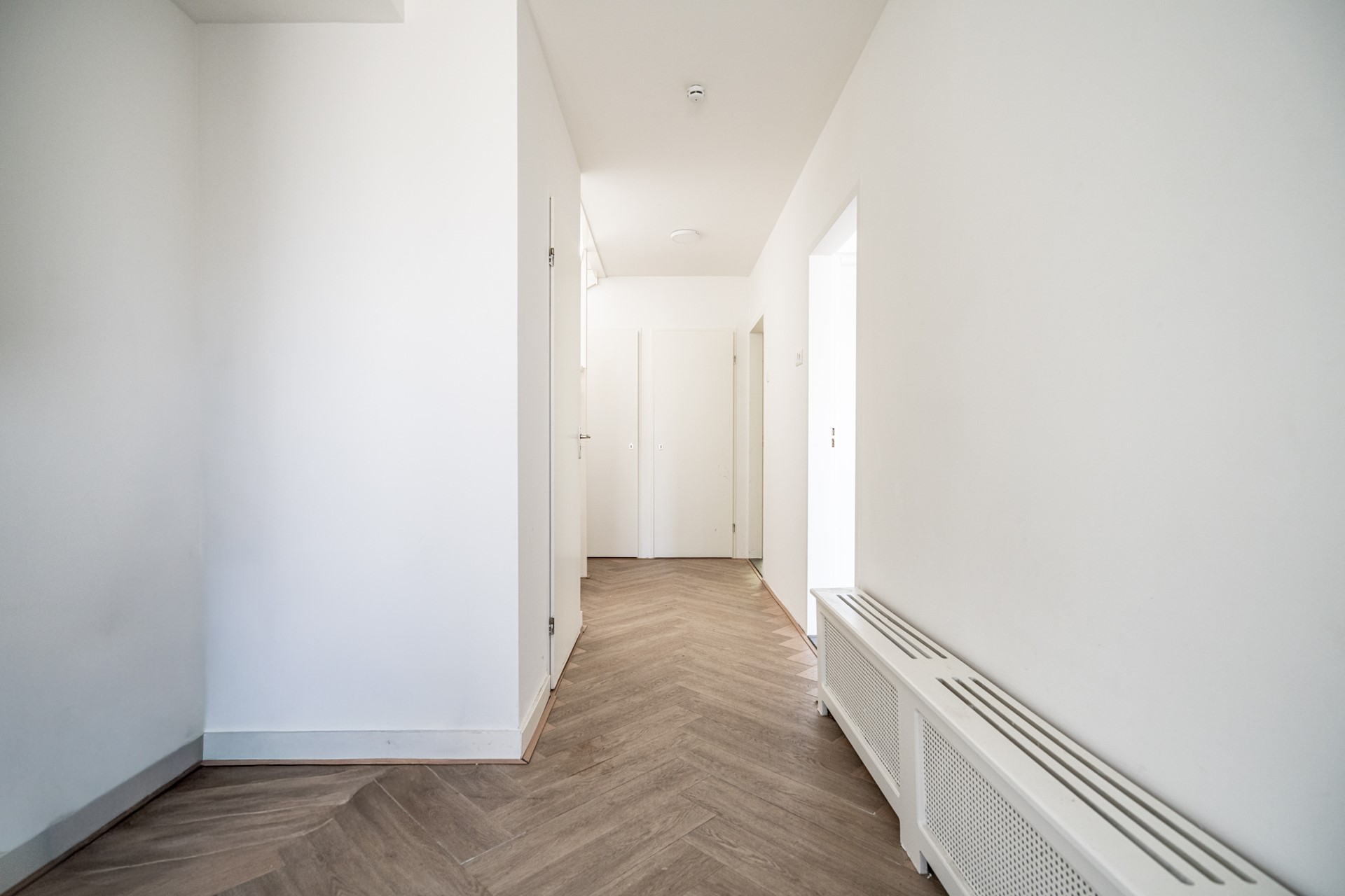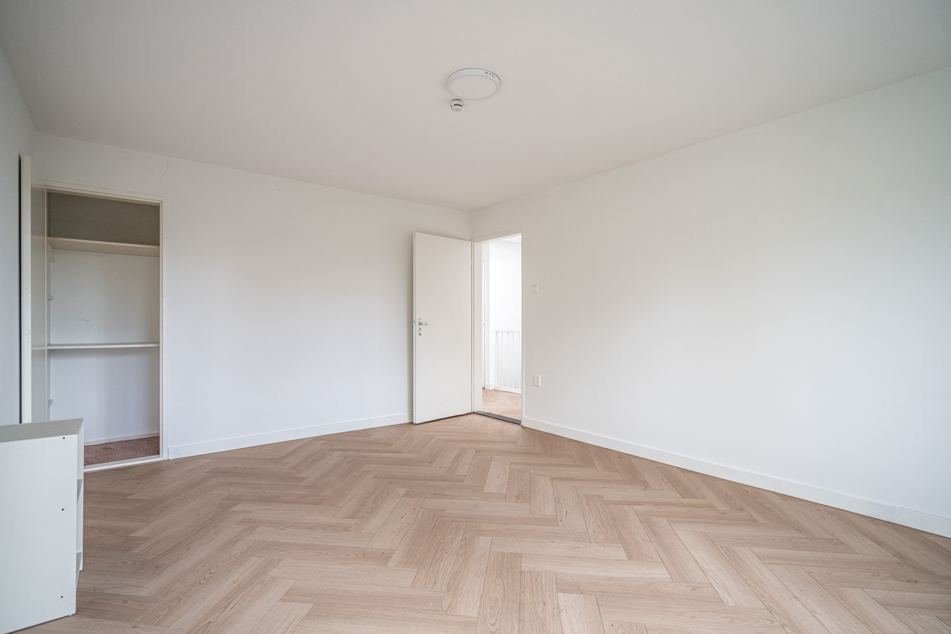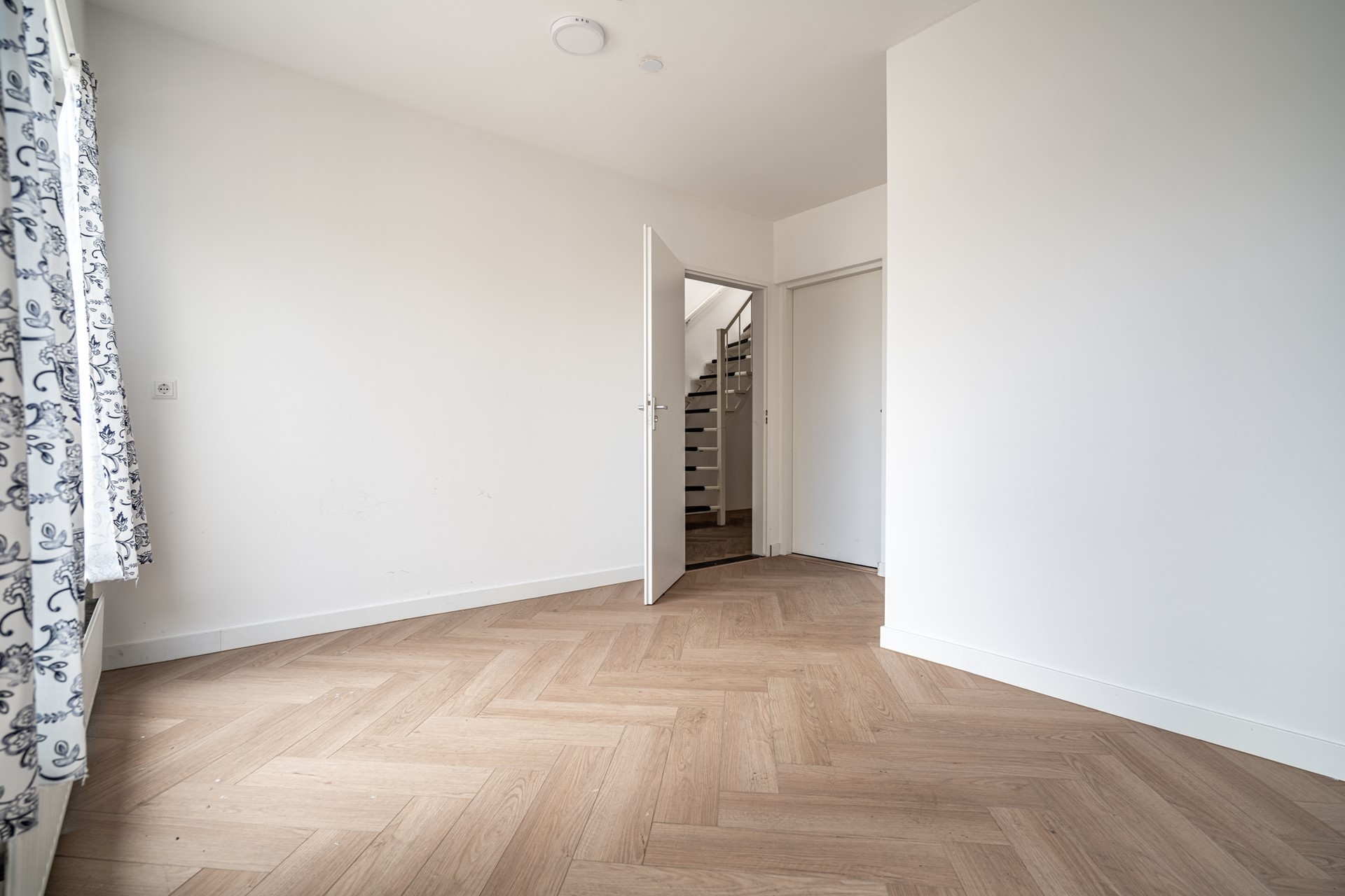 Landing with plenty of natural light thanks to a skylight, second toilet, and built-in cupboard. Spacious bathroom equipped with bathtub/shower and washbasin. Master bedroom at the rear with built-in cupboard. Rear-side room with access to the balcony. Additionally, a spacious bedroom at the front and an extra (bedroom/office).