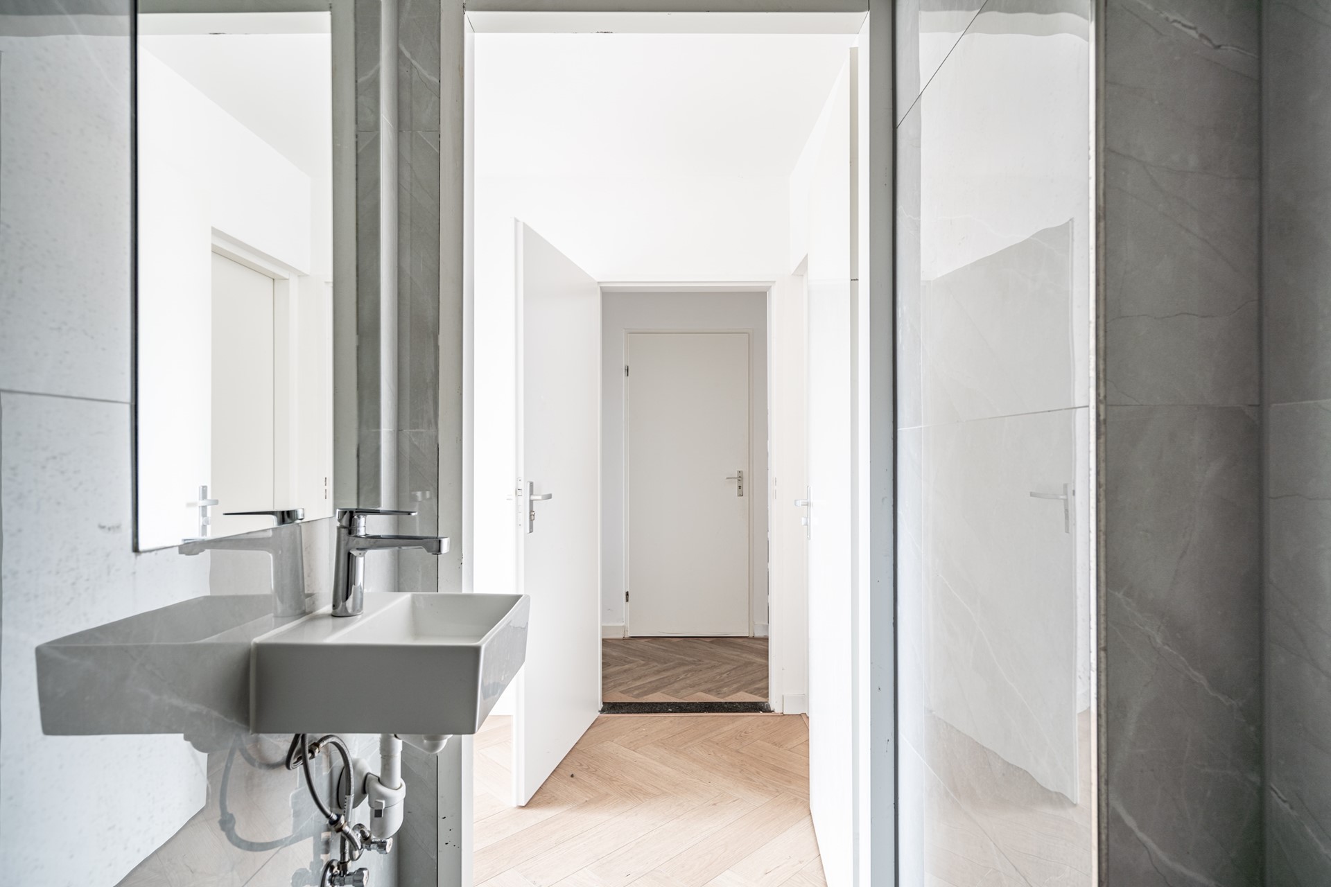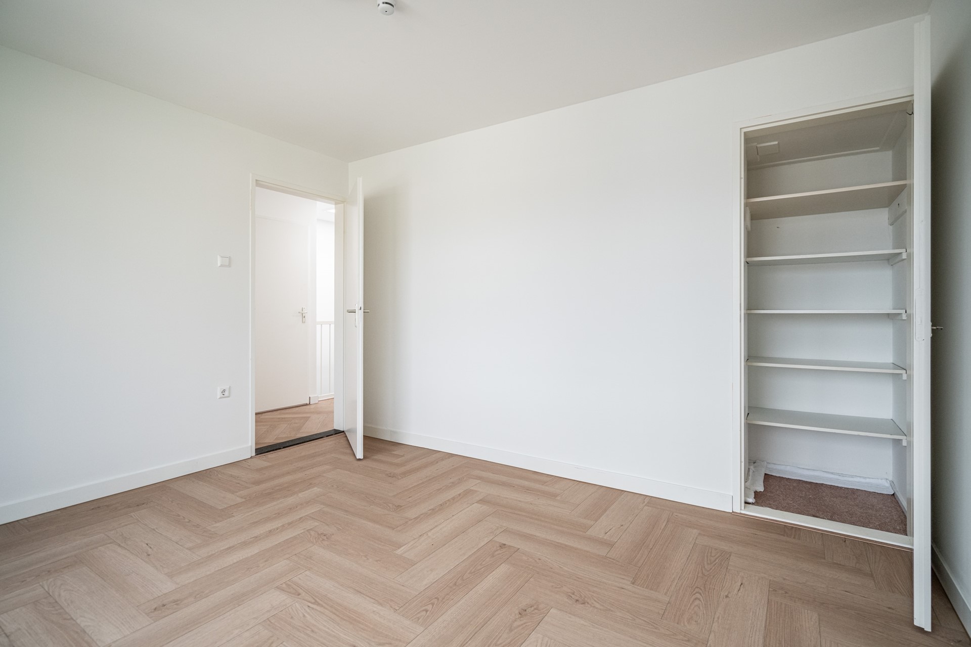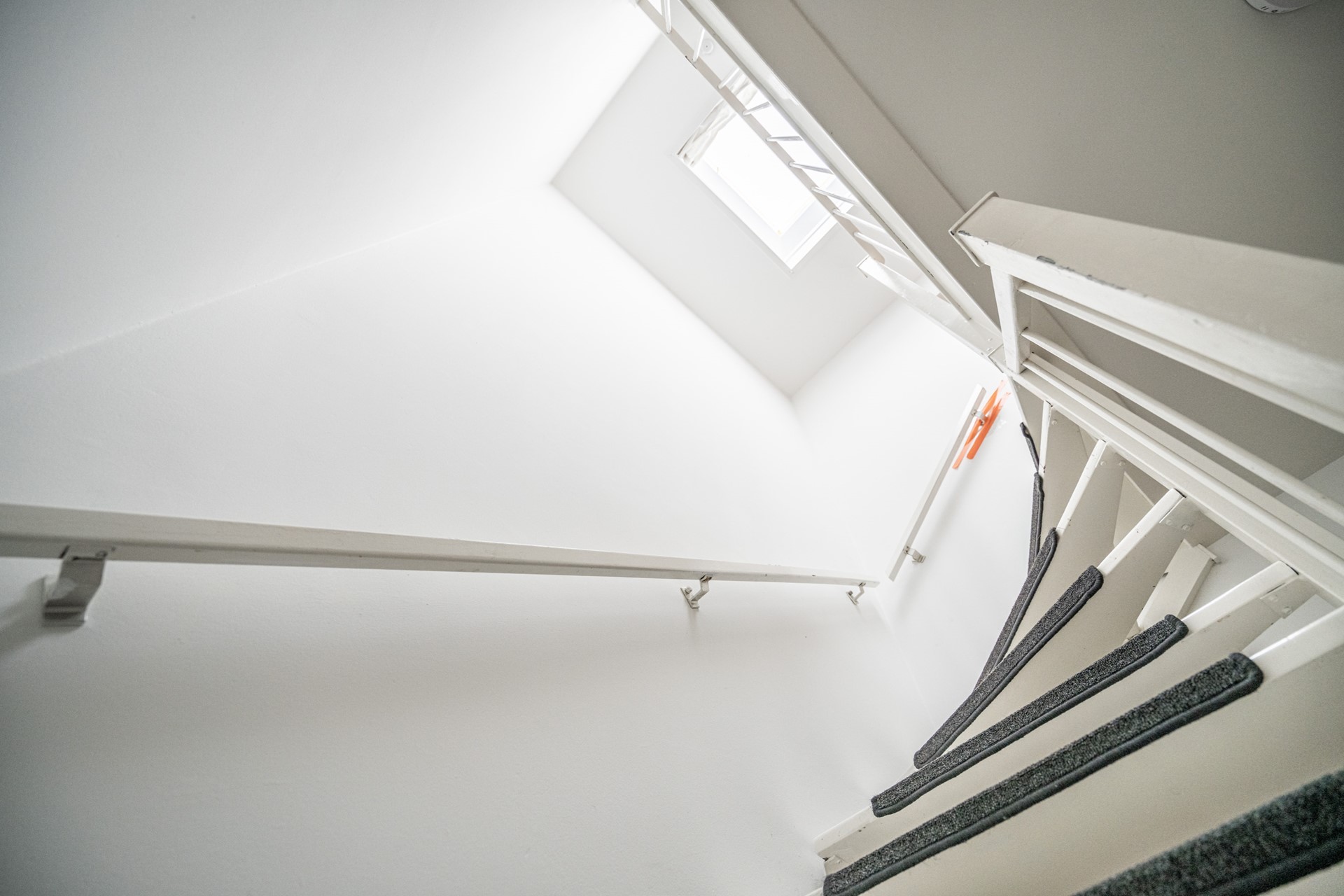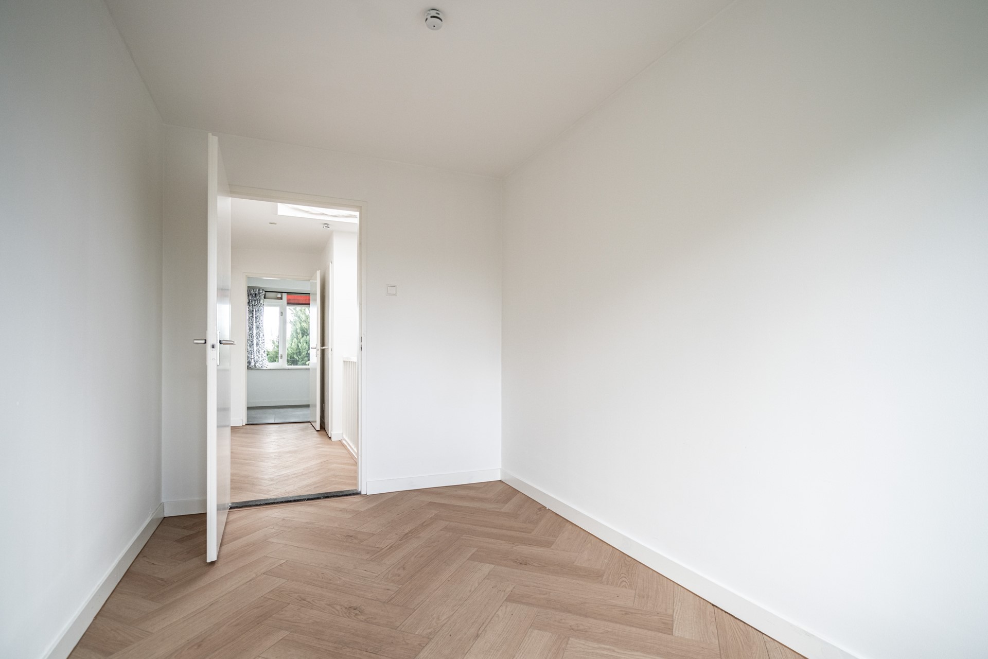 Landing with plenty of natural light thanks to a skylight, second toilet, and built-in cupboard. Spacious bathroom equipped with bathtub/shower and washbasin. Master bedroom at the rear with built-in cupboard. Rear-side room with access to the balcony. Additionally, a spacious bedroom at the front and an extra (bedroom/office).
