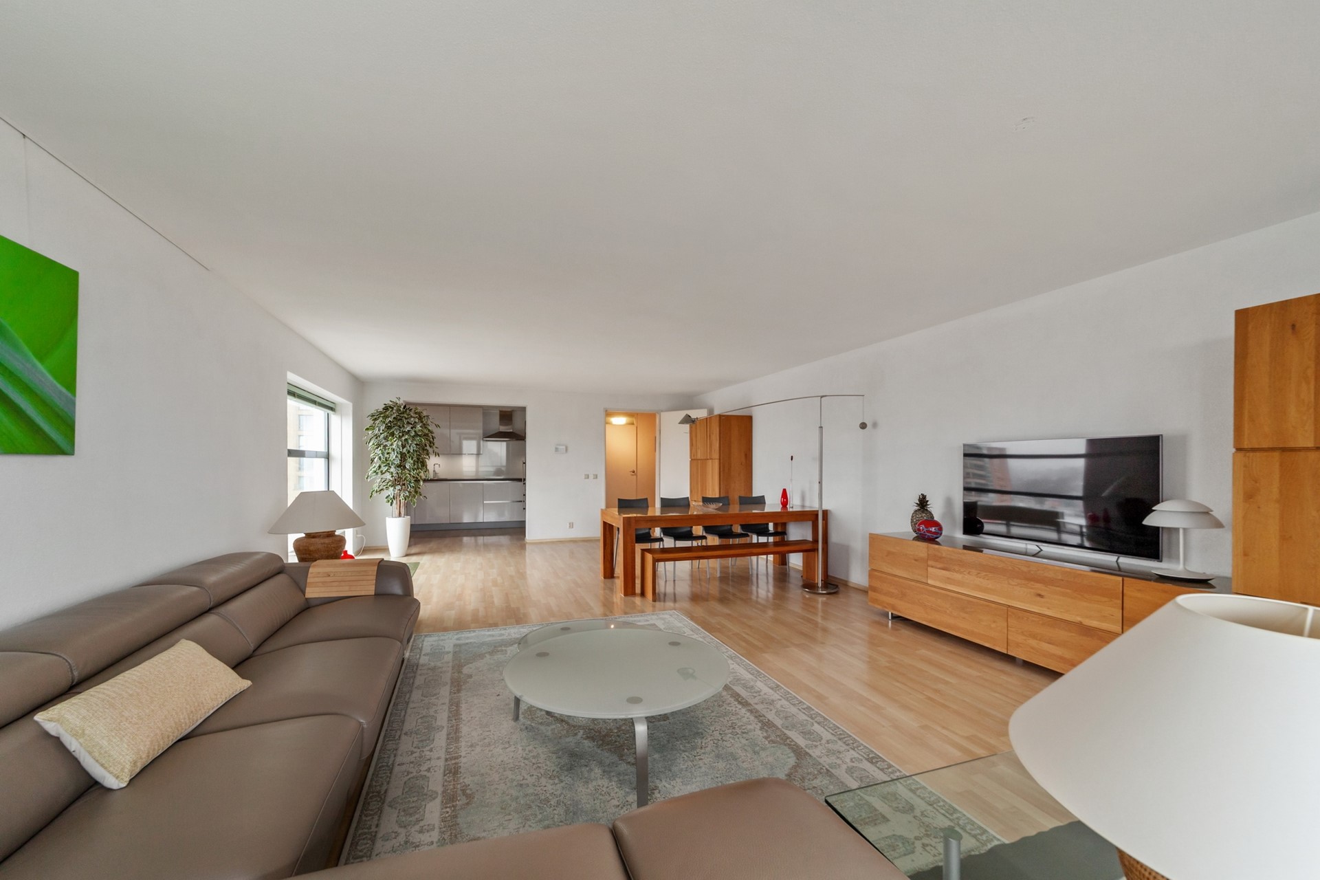 Lichte woonkamer met ruim zicht over de stad en toegang tot het afsluitbare balkon,