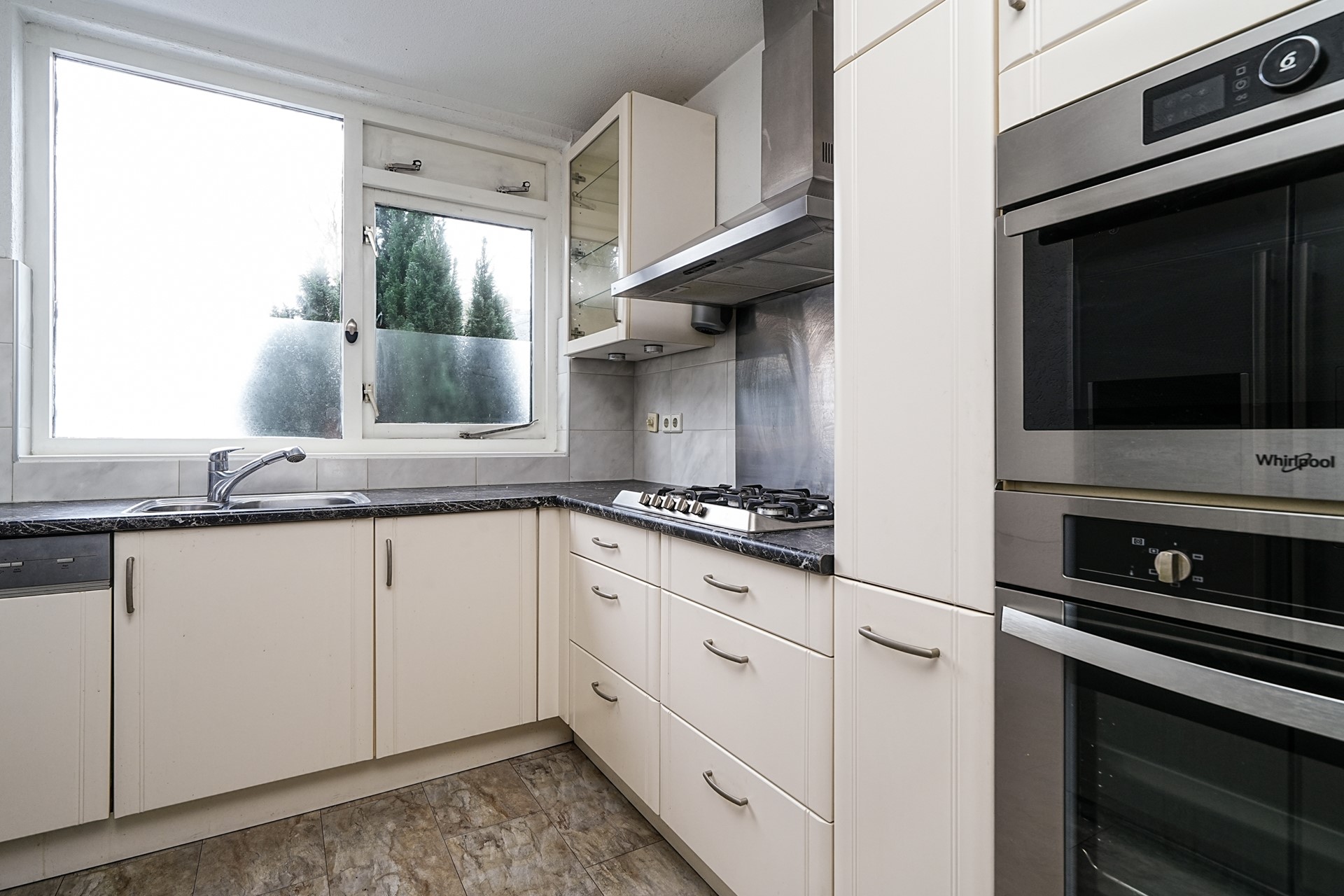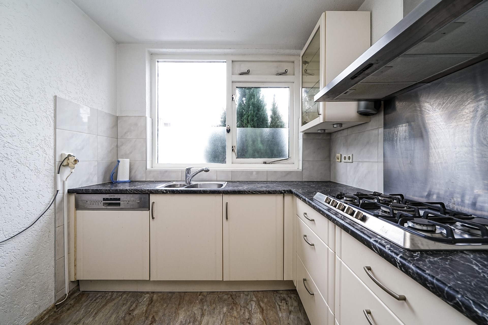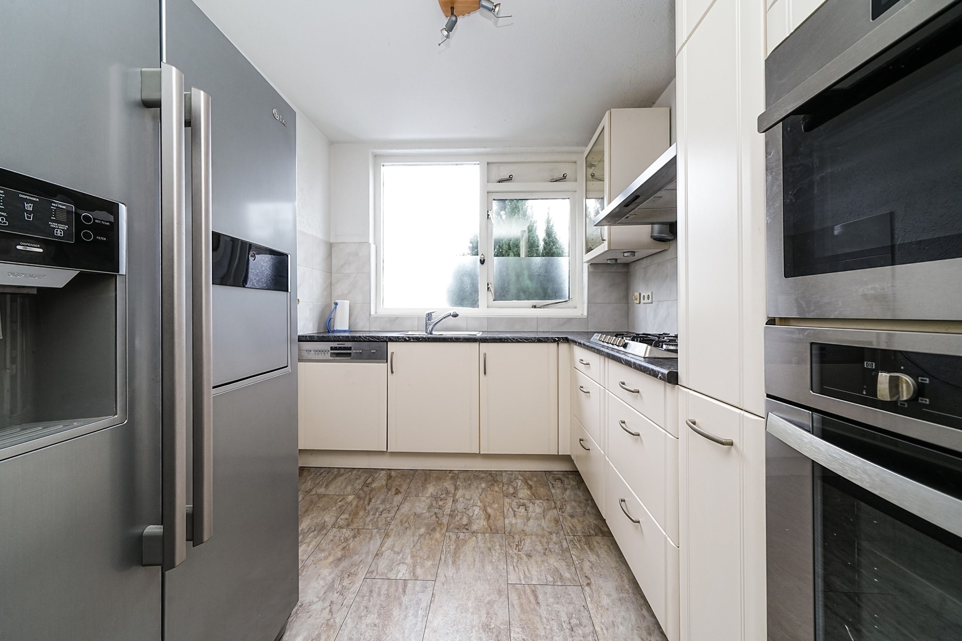 Aan de voorzijde van de woning ligt de keuken. De keuken is functioneel opgezet en voorzien van diverse inbouwapparatuur en een losse ijskast. Dankzij het raam aan de voorzijde is er daglichttoetreding tijdens het koken.