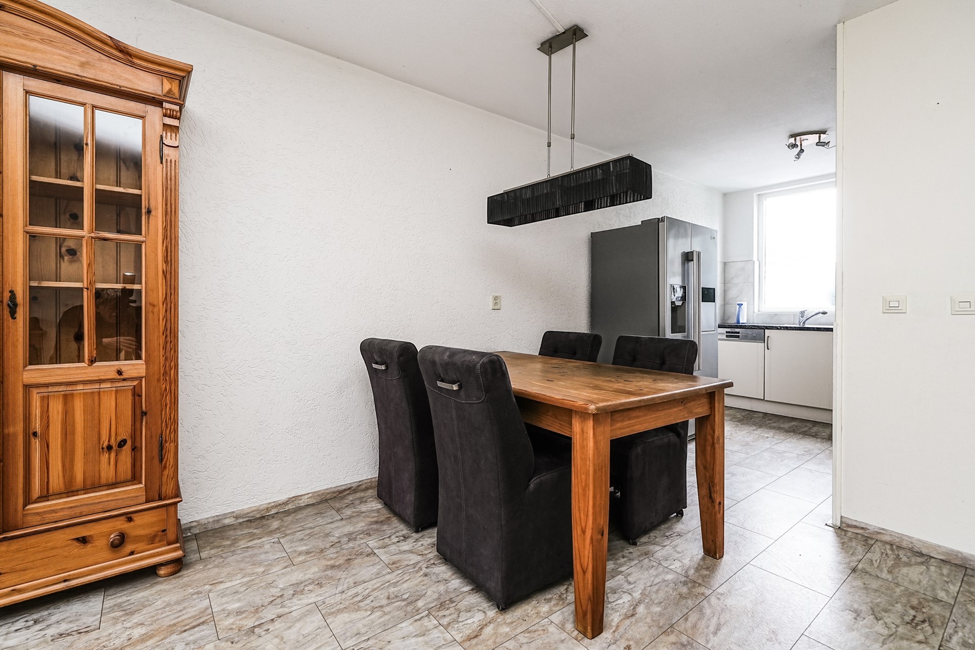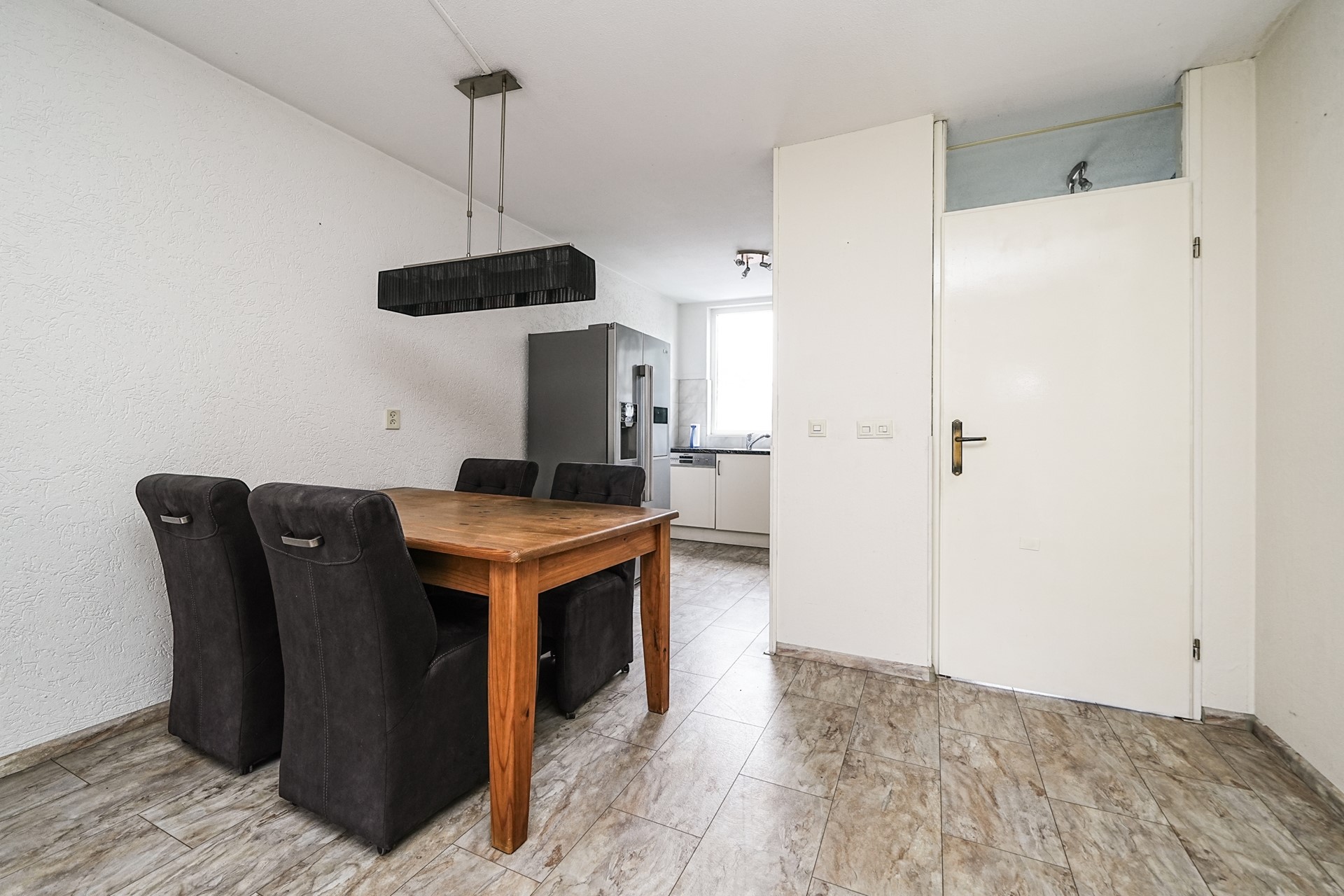 De woonkamer vormt het kloppend hart van het huis. Dankzij de grote raampartij aan de achterzijde valt het daglicht rijkelijk naar binnen; wat zorgt voor een prettige sfeer en een gevoel van ruimte. Je hebt hier voldoende plek voor een comfortabele zithoek en een fijne eettafel waar je samenkomt met familie of vrienden. Of je nu werkt, relaxt of dineert, je kijkt altijd uit op de fraai aangelegde achtertuin. En daarbij: de open keuken maakt het koken net even gezelliger.