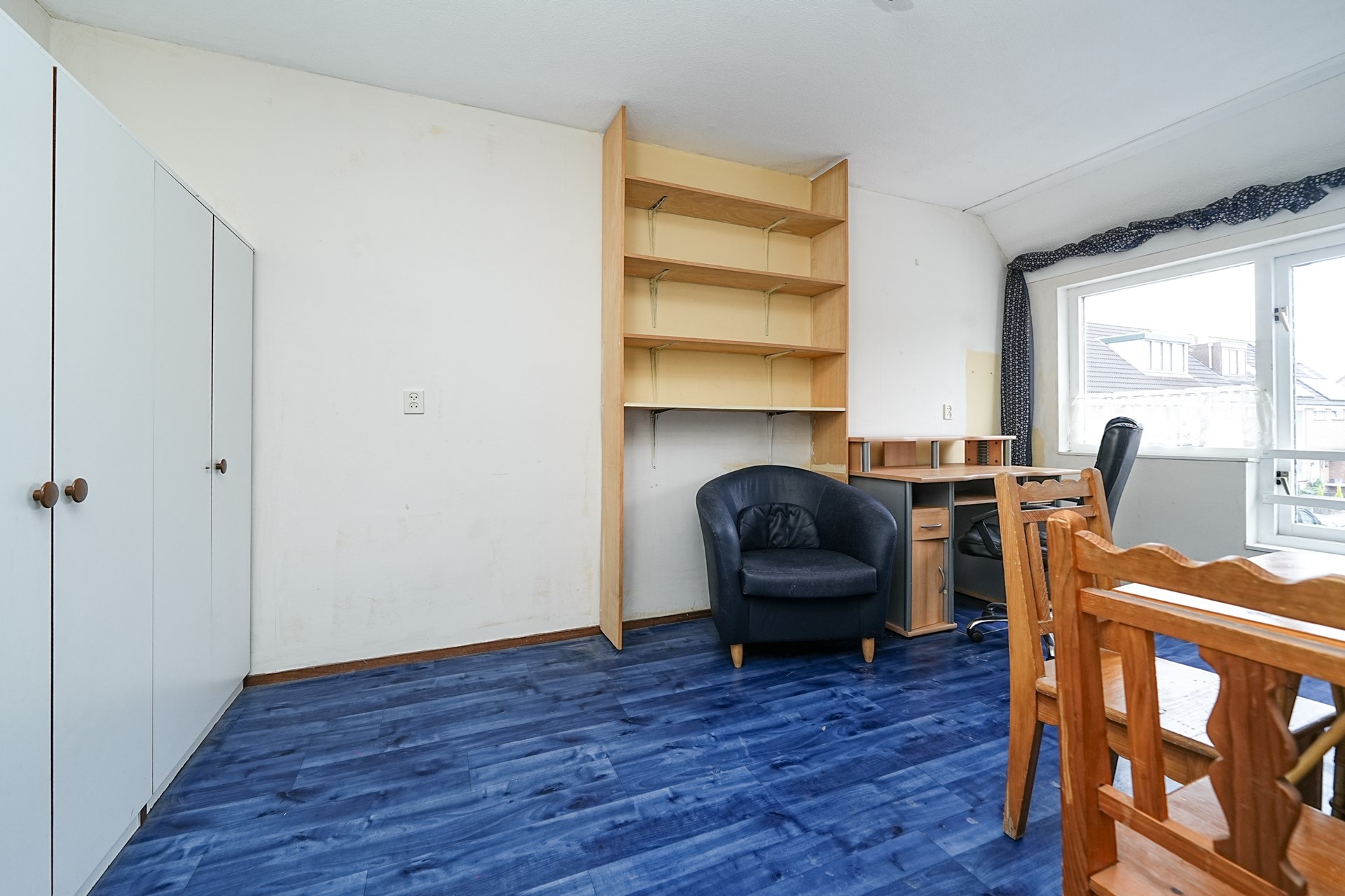 De tweede slaapkamer ligt aan de voorzijde van de woning en heeft een royale afmeting. Door de lengte van de kamer is deze flexibel in te delen, bijvoorbeeld als volwaardige slaapkamer, werkkamer of combinatie van beiden.
