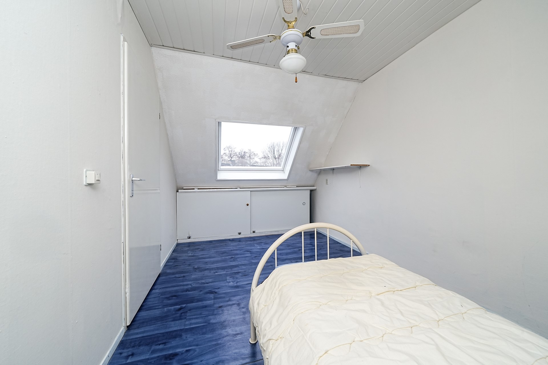 Aansluitend ligt de zolderkamer. Dankzij het dakraam is dit een lichte ruimte die zich uitstekend leent als extra slaapkamer, werk- of hobbykamer.